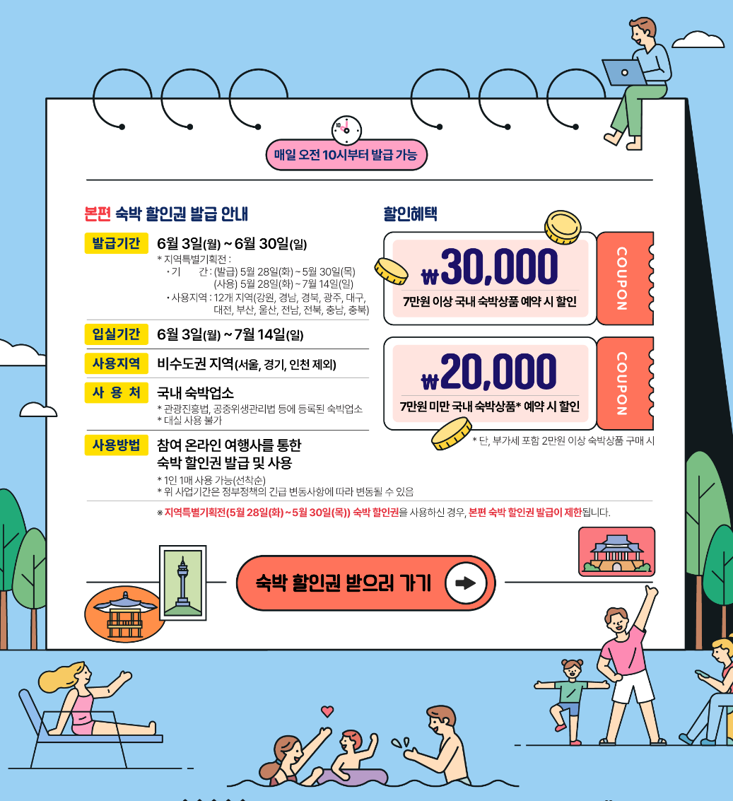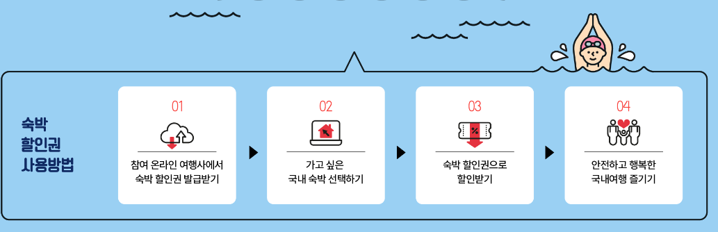 - 사용방법 : 참여 온라인 여행사를 통한 숙박 할인권 발급 및 사용