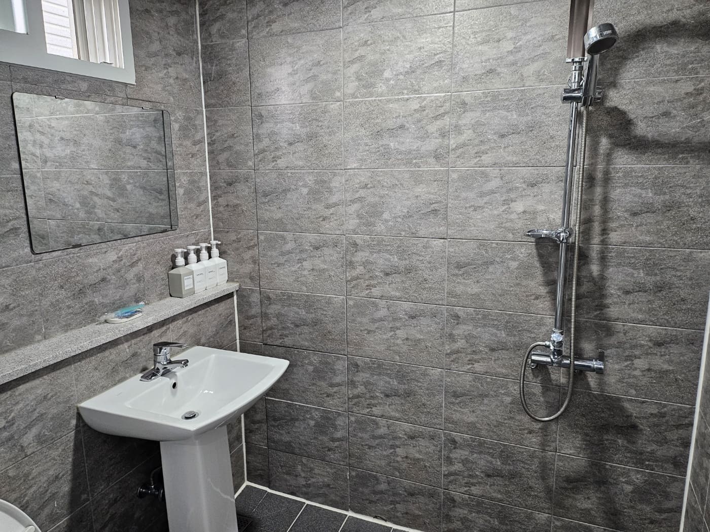 욕실은 생각보다 깔끔해서 좋았습니다 ! 기본적인 세안용품은 가지고 다니는데 샴푸,린스,바디워시,핸드워시까지 구비되어 있고, 일회용 칫솔치약이 준비되어 있어서 편했습니다. 대신 워시폼은 따로 없으니 가지고 오시면 조금 더 상큼하게 씻으실 수 있을거에요 !